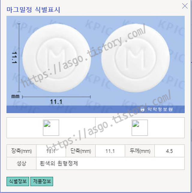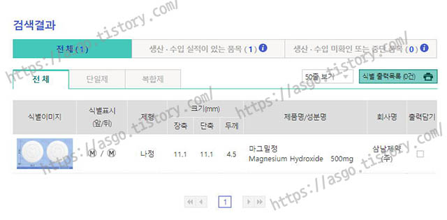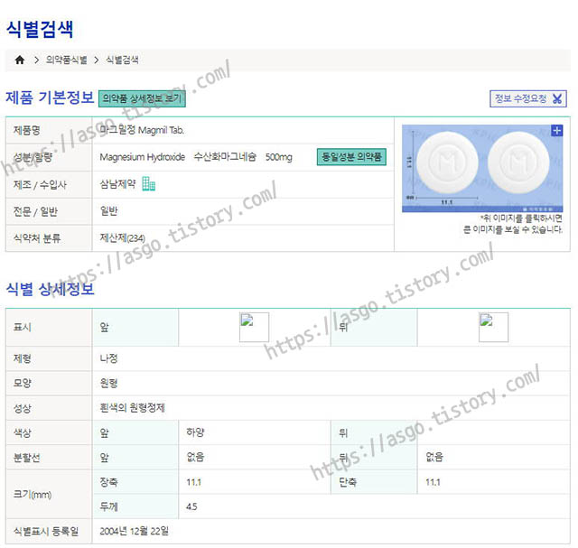 그럼 제가 가지고 있던 마그밀정의 약 모양을 가지고 검색을 해보도록 하겠습니다.