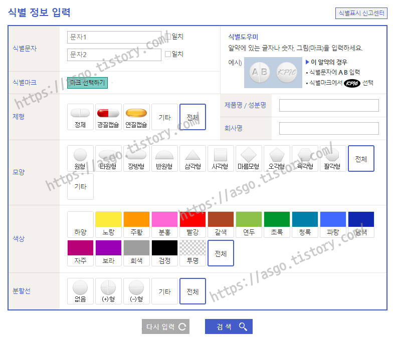 식별 검색에서는 약의 이름을 모르는 상태에서 약의 식별정보. 즉, 약의 모양으로 검색을 할 수 있는 서비스입니다.